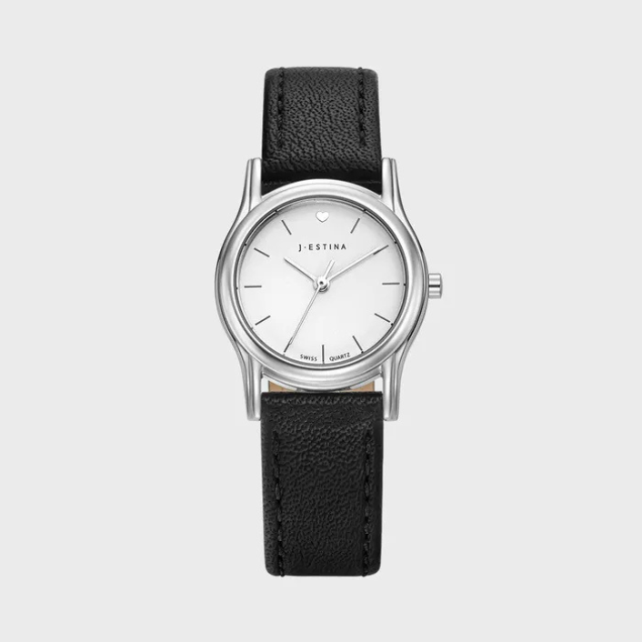 Thiết kế mặt đồng hồ hình vuông nhỏ gọn, với “heart index” – tức là các vị trí giờ được đánh dấu hoặc thiết kế hình trái tim, tạo điểm nhấn nữ tính.